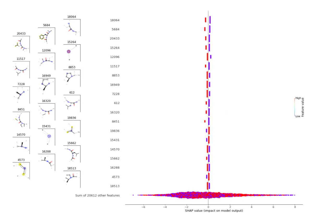 Figure 15 : Interpretability on Morgan fingerprints using SHAP values.